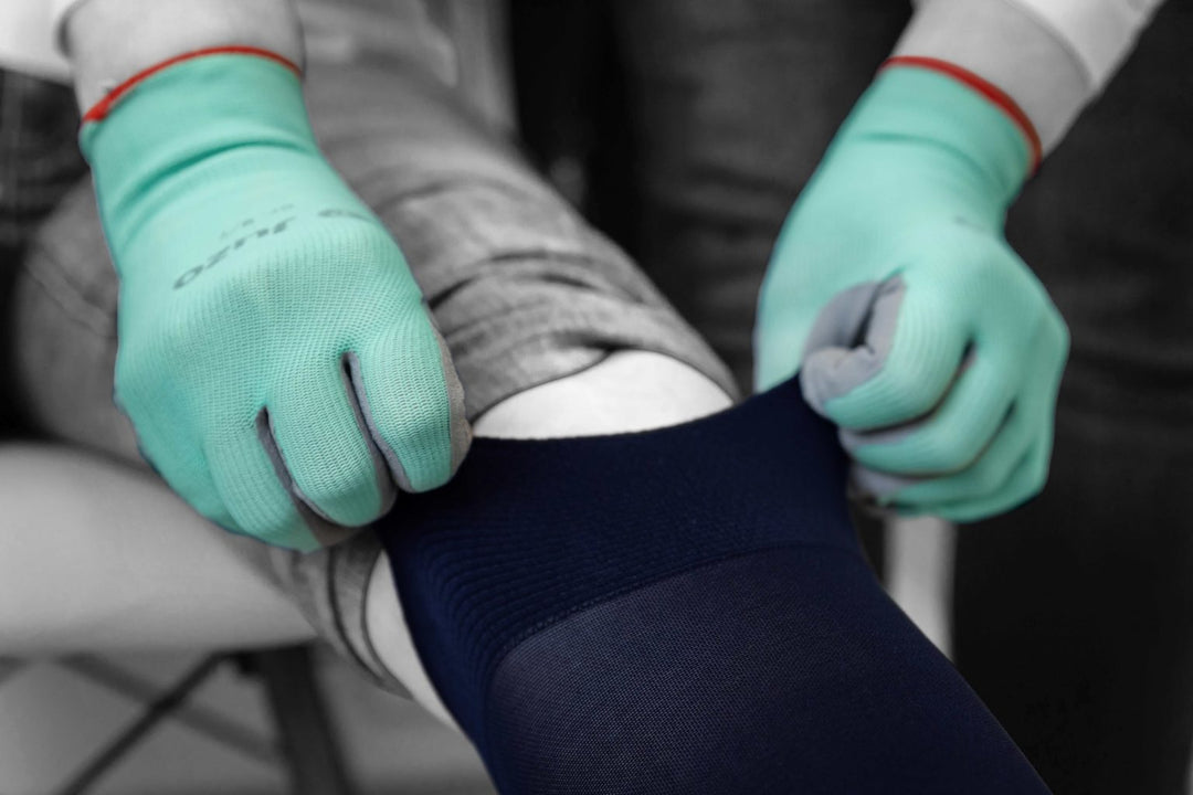 Gemeinsam testen wir die Passform Ihres Strumpfes und geben praktische Tipps zum Anziehen und zur Pflege des Strumpfes.